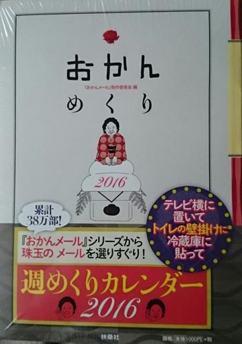 JUGEMテーマ:カレンダー そういやまだ今年のカレンダー買ってないな、と。 いつもいただくもんで、買うまでにはいたらないのですが 昨年は「修造カレンダー」買いました。 今年も活躍中です。 本屋をのぞいていると 気になるものを発見。 「おかんめくり」 えっ('ω') おかんメールのカレンダー版? しかも週めくり? 結構な頻度でめくらさせるな('ω') 値段1000円。 冒険するには手が出しや...