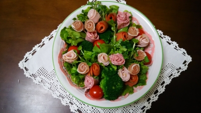 JUGEMテーマ:制作状況 2015.12.17 今日は父ちゃんとママの結婚9周年の記念日です。(*´ω`*) 9年も経ったのね〜。 あんなことも、こんなこともありました。 それでも一緒にやってこれたのは お互いに足りないところを認めて、 頑張っているところも、ちゃんと認め合ってきたから。 かなぁ〜。(*´∀`*) 今回は、ハムとサーモンで色鮮やかなサラダにチャレンジしてみました。 なんと!美しい〜♡ 所々に爪楊枝が見え隠れしていますが 見え...