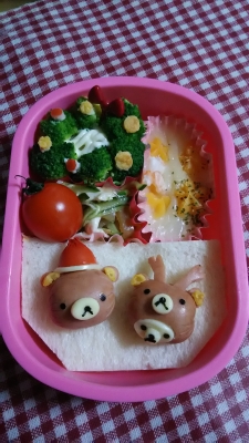 JUGEMテーマ:制作状況 2015.12.21 クリスマスまであと3日です。 明日のお弁当は絶対クリスマスでいくぞー! と、気合を入れて昨晩布団に入りました。 朝起きて、いざ作ろうとしたら パンでサンタをどう作ろう・・・(TдT) と、悩みました。 で、今日のこのサンタとトナカイは、 momoさんの本に載ってたお弁当レシピを、 サンドイッチでアレンジしてみたんです。 【momo's obentou サンタさんトナカイさんのお弁当】作り方はこちら http://momo-obentou.blog.jp/arch...