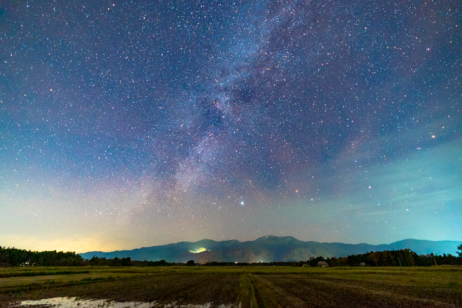 星空が冷たく美しい夜でした。 [α7Sii,FE 16-35mm F2.8 GM,30,F2.8,iso6400] 昨日の国仲平野です。 正面のいちばん高い山が佐渡の最高峰・金北山(Mt.kimpokusan)(1,173m)です。 [α7Sii,FE 16-35mm F2.8 GM,30,F2.8,iso6400] 場所を変えて。 手前の水が張られた田んぼは、佐渡が世界に誇る「朱鷺と暮らす郷認証米」の認証制度の取り組みの1つである「冬季湛水」です。 「ふゆみずたんぼ」と呼ばれ、通常、水を抜く冬場においても田ん...