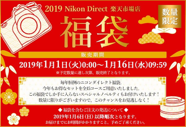 毎年恒例ニコンの福袋、2019年はどんなラインナップでしょ? 2019 Nikon Direct 楽天市場店 福袋 デジタル一眼レフカメラ福袋は6万円コースから150万円コースまで、Nikon 1/COOLPIX/KeyMission/双眼鏡福袋は5千円コースから15万円コースまでと来年の福袋も幅広いラインナップな模様。2019年の最高額福袋は150万円コースみたいですね。しかーもコレ毎年瞬殺しているのが驚きだったりするんですが、内容を見てみるとなにげにお得だったりするんですよね。まぁ個人的には手が出ませんが(笑) ...