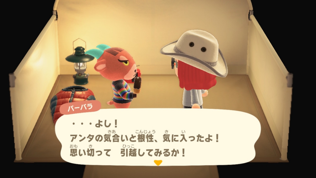 JUGEMテーマ:ニンテンドースイッチ(Switch)ゲーム全般 春はわざとキャンプサイトの頻度落としてあるのかね……。久々にお客。 うちの島にはアネゴが居ない。バーバラさんは是非ともお招きしたい所。 この後、ごねるごねる。……定住民の名前全員出た。 と言う事で、またハムスターをお見送り。ありがとう。またどこかで。 口癖の影響を何も受けないまま、たまちゃんはマイペースに生活している。ハムジ、シベリア、シャンティ。たまちゃんの後に来た住民...