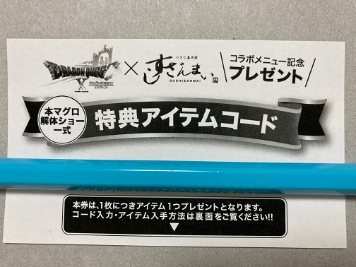 「すしざんまい」でDQ10特典アイテムコードをゲット。 チェーン店でも回らない寿司屋であり、客単価は牛丼屋やカレー屋や定食屋の3倍はあるだろう。コロナ禍でみんな外食を避ける中、新たな客層を開拓するコラボは有効な手である。なおこのシャーペンは小学生の頃から使っているw