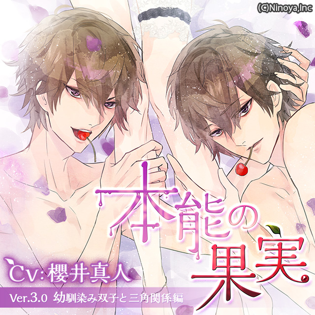 全編ダミヘ収録★18歳以上推奨シチュエーションCD 【本能の果実】ver.3.0 幼馴染み双子と三角関係編 2015年12月22日発売予定 葉山考輝&充輝 CV:櫻井真人 外見は似ているが、性格は対照的。昔から近所に住んでいる幼馴染み。 二人とも長らくヒロインに好意を寄せているようだが…… ⇒http://ninoya.jp/honnou