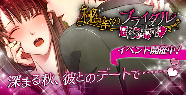 JUGEMテーマ:乙女ゲー 秘蜜のブライダル 〜凌辱の花嫁〜 期間限定イベント「悦楽のほてり」 10月30日(金)15時〜11月4日(水)15時迄開催!! 今回は一樹と智流の2コース、3エンドにて 通常、蜜、艶の3種のお話をお楽しみ頂けます。 一樹ルートでは、紅葉の写真をみて山奥にある滝に全員で出かけることに。 一樹さんにふたりきりではないことで、甘く責められて…!? 一樹さんは滝までの山道が険しい為、あなたの体調を心配してくれる。 山奥でふたりきり、一樹さんの労わりのマッサージが、あなた...