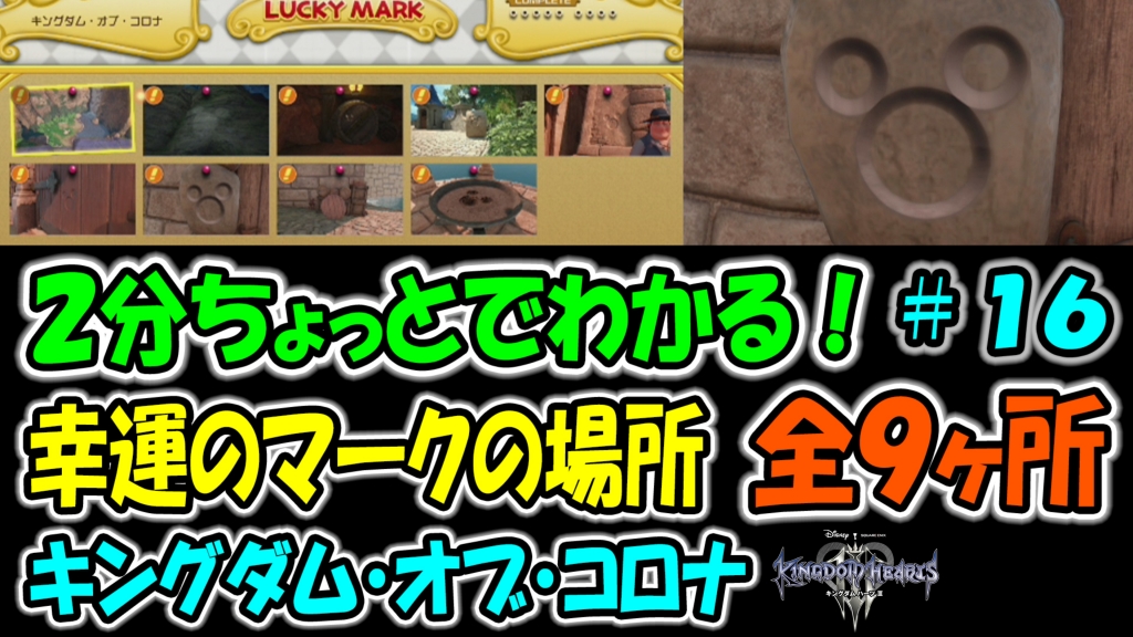 JUGEMテーマ:PS4全般 キングダム・オブ・コロナ、幸運のマーク全9ヶ所です(^ω^*) 途中で雑音が入っている所があります。申し訳ないです!m(__)m 他の幸運のマークの場所も再生リストに動画まとめてあるので良かったら、観て頂けると嬉しいです(^ω^*) ⇓ のURLは動画のリンクです(^ω^*) https://youtu.be/7NG2AgwW7TI #キングダムハーツ3 #キンハー3 #kingdomhearts3 #キングダムハーツIII #PS4 #攻略 #YouTube #幸運のマーク #隠れミッキー #キングダムオブコロナ