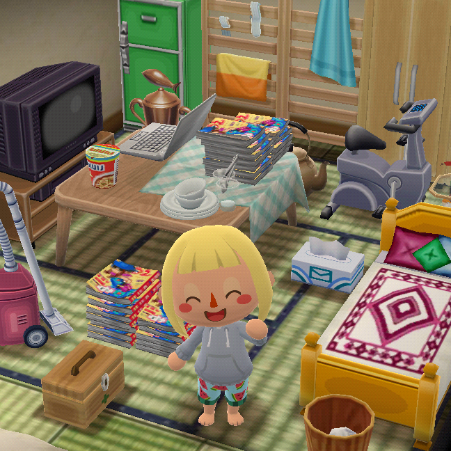 JUGEMテーマ:どうぶつの森 掃除機と救急箱とカップラーメンがお気にいりです。 (^−^)雰囲気が出る。 もっと日常的な雑貨が増えるといいなぁ