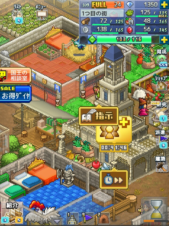 JUGEMテーマ:自由度の高いゲーム わりと自由度が高いゲームです。街を成長させるのも、住民を揃えたりレアな装備を揃えたり、フレンドと協力したりと。 しかし、 自由度高くても街の建物配置を適当にしたり、素材を考えないで使うと痛い目にあいます。 ある程度成長するとこんな感じになります。 まだ始めて25日ですが、もっと進めると街を幾つも持てるようです。 こちらも少しずつ楽しんで行きたいです。