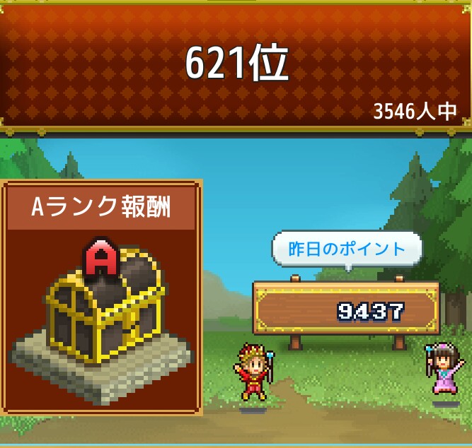 JUGEMテーマ:自由度の高いゲーム 冒険キングダムには色々な楽しみ方があります。 その一つに敵を倒したポイントを他のプレイヤーと競い合うものがあります。 ランクが高いほど貰える物が良くなるので頑張っていたのですが中々成果が上がらなかったのですがやっとAランクをとれました! これからも精進しますよー!