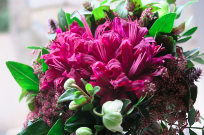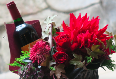 JUGEMテーマ:アロマテラピー こんばんは mugetです。 夜になってちらほらと雨が降りましたね。 そして、やっぱり寒い。。。 今日はご依頼があってワインとお花のコラボ。 アレンジメントをお作りさせていただきました。 よくある組み合わせではあるのですが、思いを乗せて制作しましたよ。 渋めの赤ワイン。(そこそこ高価なお品物かと思われます!) それに合わせて、お届けする方のイメージやご依頼された方のお好みをカタチにいたしました。 『シック...