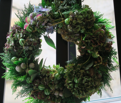 JUGEMテーマ:アロマテラピー こんばんは muguetです。 先日、新たにリースをお作りいたしました。 スズメウリがアクセントのリースです。 ベースは銀葉アカシアの葉です。シルバーがかった美しい葉です。 葉が乾きやすいのである程度、鑑賞をしたらドライになりきる前に 葉を繋いでリースのベースにしました。 そこに、ヒバやヒノキなど針葉樹と紫陽花でお作りしました。 スズメウリも絡めながら。。。 たくさんのグリーンを重ねたフレッシュリースの...