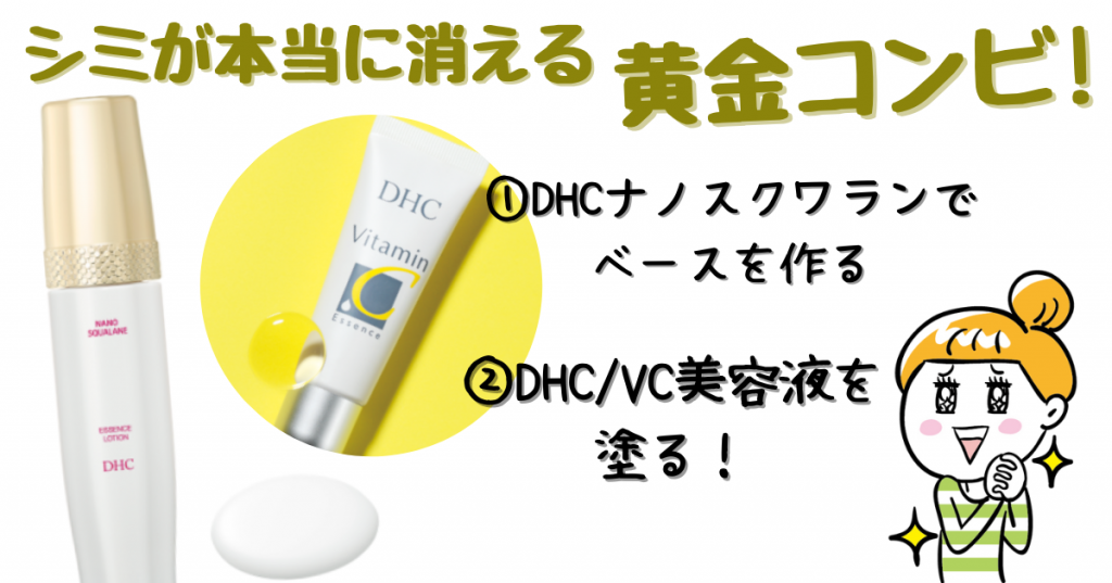 JUGEMテーマ:キレイになる為に!! 直営店のスタッフさんに、 「グイグイ浸透してくれるベースを作ってくれますよ〜」 とすすめられ、10〜15年間!?消えてくれない頑固なシミの為に購入しました。 ナノスクワランエッセンスローション→VC美容液 サラサラとしたナノスクワランエッセンスローションの後、VC美容液を塗る。 →これを2か月続けた所、目立たなくなった所と薄くなった所と効果ありました。 続けて良かった。 後は予防です! 【本当にシミが消える黄金コンビはコレ↓↓↓】 DHCナ...