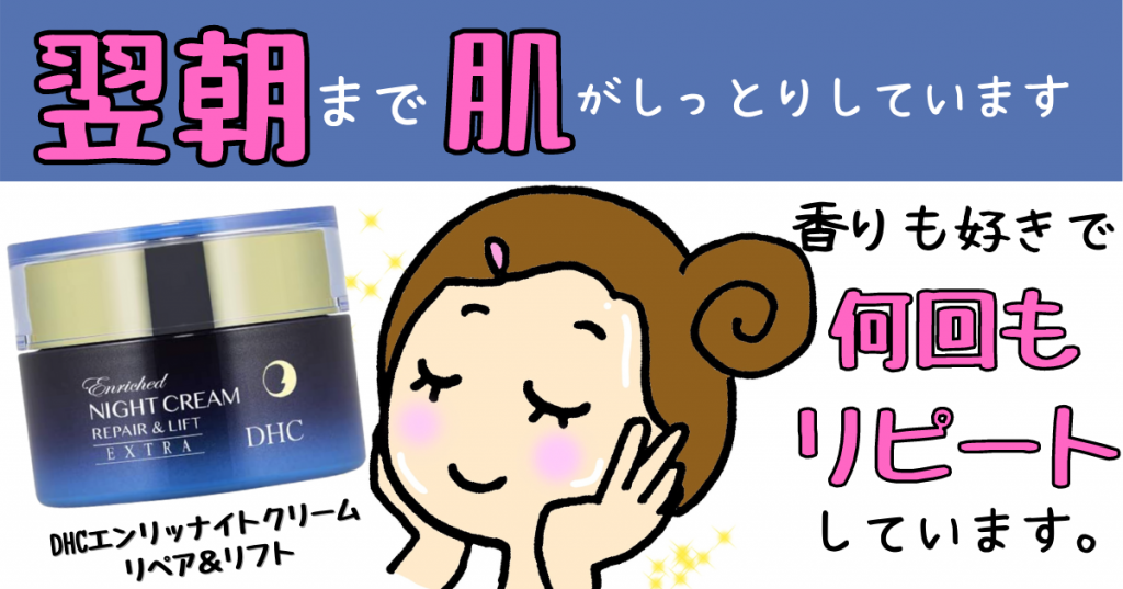 JUGEMテーマ:キレイになる為に!! 夜のお手入れの最後に使うのが毎日の習慣になって以来、翌朝のファンデーションのノリが良くなり、朝から気分良くメイクできます。 欠かせない基礎化粧品の一つになりました! 【翌朝までしっとり♡DHCエンリッチナイトクリームリペア&リフト】