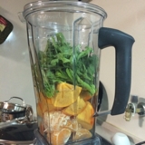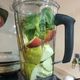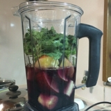 春菊1/2袋 林檎1個 ブルーベリー100g バナナ1本 冬に冷凍ベリーをそのまま使うのは、やはり冷たいですわ。 前日に出して解凍しておくのが良いですねー。 JUGEMテーマ:グリーンスムージー
