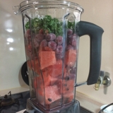 パセリ1袋 西瓜(L玉)1/8個 ラズベリー200g 水なし きれいな赤色になるよ。 JUGEMテーマ:グリーンスムージー