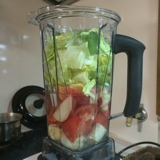レタス1/4玉 ミント8枚 桃1個 トマト1個 バナナ1本 トマトは、入れると、まあおいしいものになるんだけど、いつもの果物に慣れている味覚だと、「これは……ビミョ……いや、野菜ならおいしいのか」ってなる。 JUGEMテーマ:グリーンスムージー