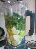 ほうれん草1/2袋 青林檎1個 バナナ1本 プラム1個 冷蔵庫の隅に1個だけ残っているプラムを見付けたので、救出。危ない危ない。 出来上がりの量がいつもより少し増えるけれど、甘みと酸味の配分は、これぐらいが良いねー。 JUGEMテーマ:グリーンスムージー