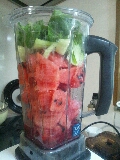 ルッコラ1袋 西瓜(M玉)1/4個 トマト1個 水なし 西瓜を!! 貰いました!!(狂喜) 西瓜を使う時は水は不要ですが、ミキサーを回りやすくするために、切った西瓜のいくつかを手で握り潰しておくと良いです(ワイルド) JUGEMテーマ:グリーンスムージー