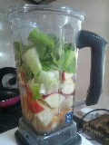 レタス6枚 ミント10個? 青林檎1個 ブルーベリー100g カラーオレンジ1個 林檎より青林檎の方が、ミントと合っている気がします。 ミントのおかしな数え方は、4/27の記事参照で。 JUGEMテーマ:グリーンスムージー