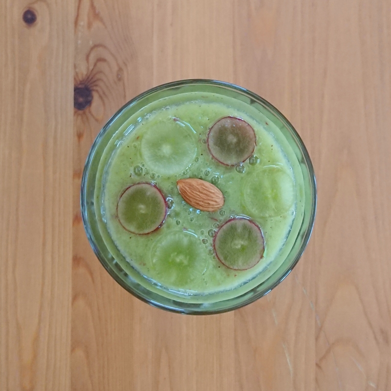 不調を感じやすい季節には体をいたわるスムージーを⭐ 疲労回復はもちろん抗酸化作用も嬉しいぶどう🍇、 医者いらずでおなじみのりんご🍎、 グリーンはスーパー野菜クレソンで栄養強化+この季節特に意識したい抗菌作用も! 水溶性食物繊維を足すのにキウイも追加したので、 食物繊維にペクチンにとお腹スッキリ効果もばっちり、 栄養たっぷり体に優しいレシピです✨ 材料 サラダクレソン 1パック ぶどう 1パック りんご 1こ...