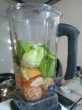 サラダチンゲン菜1株 林檎1個 蜜柑3個 生姜ちょっと うーん、ちょっと甘みが足りない。 JUGEMテーマ:グリーンスムージー