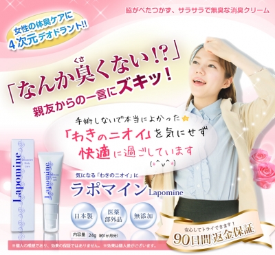 ラポマインで脇の臭い気にならなくなりました!消臭クリームで快適毎日 なんかにおうんじゃないかなって、いつも不安だったんです。 仕方ないとは思うんですけど、 でも恥ずかしい汗シミが気になってしまって。。。 これだけ脇汗をかくんだから、におってても不思議じゃないよね、って思うと、 ちょっと気になる臭いがしたら、全部自分な気になってしまって。 ラポマイン 制汗剤を使ってみたりもしたんですけど、 いまいち効果を実感できずにいました。 手術も視野に入れて、病院に行ってみようかなって思い始...