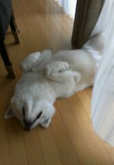 皆様こんにちは。 店長の田近です。 梅雨に入って今週は少し涼しいので、 はる君は ごらんの通りです....。 カーテン越しに雨の音を聞きながら スヤスヤお昼寝...。 「涼しくて気持ちいーよぉ...」 ほんとに気持ちよさそう! どんなに雨が降っても、 毎日朝と夜の2回、 元気にお散歩に出かけていきます! ..... あっ! 帰って来ました。 「ただいまぁー」 「おかえり はる君」 「ぼく 濡れちゃった....」 ほんとだね。 はる君 ‘‘濡れた犬の...
