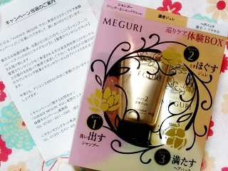 JUGEMテーマ:ヘアケア ASIENCE MEGURI サロン発想の3ステップケア体験セット 確か8月頭くらいにいただいたものです 花王さんとは相性がいいのか、よくサンプルが当選するんですが、 これは5回分のミニサイズセット+髪質カウンセリングキットのセットという超豪華なプレゼントなのです(*´▽`*) 左から インナークレンジングシャンプー →ノンシリコーン処方。髪の内部からごわつきの原因となる不要なカルシウムを洗い出します。 濃密ジュレ →髪...