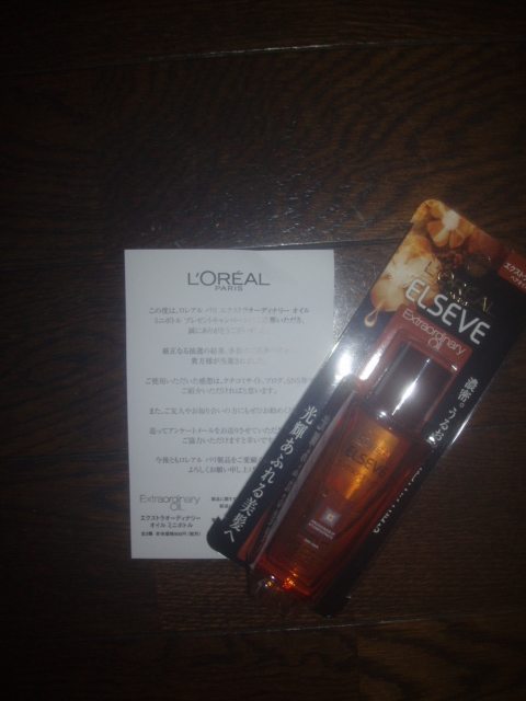 ロレアルパリの懸賞で当選しました!!わ〜い!! 早速、エクストラオーディナリーオイルエクストラリッチフィニッシュ使ってみました。 シャンプー後、髪を乾かす前に1円玉サイズを手のひらで伸ばし、髪につけます。 このオイルとってもいい甘い香りがします。 翌朝、髪を触ってみると、いつもより髪がまとまりやすくなっていました。手触りも違い、髪もしっとりしています。 スタイリングもしやすく、一日中髪がいい感じ。 このオイルの香りにも癒されるので、オイルを使うのが楽しみになってきている今日...
