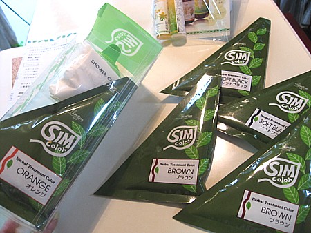 JUGEMテーマ:ヘアケア 今日はシムシムジャパンのシムカラーについてのご紹介です。で、簡単にここで言いますとシムカラーってのはヘナを使った毛染めっちゅうんですかね?まあ、いわゆる白髪染めです。で、我が家にはモニターとして、届いたのがこちら。 な〜んか、いっぱい来たんすがヘナ2パックにシェイクボトル、手袋、シャワーキャップがついたセットがこちら。お手軽簡単、シムカラーEXセットと言うやつです。 で、中身を出しますと、このようになっております。 なーんか暗い写真で...