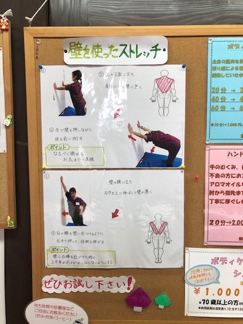 JUGEMテーマ:接骨院・整骨院 JUGEMテーマ:ヨガ・ストレッチ こんにちは。 火曜の女、岸野です。 当院内にある、不定期に更新しているストレッチの掲示 見て下さっていますか? お家でも出来る簡単なメニューにしています。 また、本棚に今までのストレッチのファイルもあります。 是非お待ちの時間に見てください。 また、コピーをお渡しも出来ますので、欲しい方はお気軽にお声がけください。 &nb...