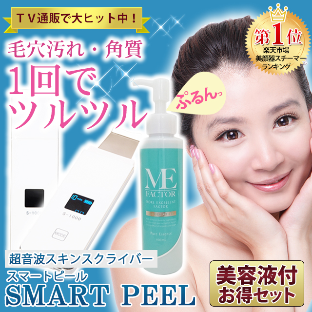 JUGEMテーマ:美顔器・美容機器 超音波美顔器!スマートピール!楽天でもっともお得なセットに挑戦! 超音波美顔器!スマートピール!楽天でもっともお得なセットに挑戦! 楽天美顔器すチーマーランキング1位獲得! 上位入賞常連! テレビ通販で大ヒット中! 自宅で贅沢エステウォーターピリング! 微弱電流とイオンの力でお肌にハリツヤ! 超音波美顔器!スマートピール!の特長! 水を使うだけの簡単操作で毛穴の汚れがすっきりキレイ! 1台4役 安心・安全日本メーカー ...