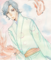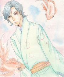 JUGEMテーマ:オリジナルキャラクター 「解けぬ繰り糸であろうと、解くのみだ」 // 絢匡。 金魚が難しかったー! そして水彩。アナログはやっぱり描いている感触がして好きです。