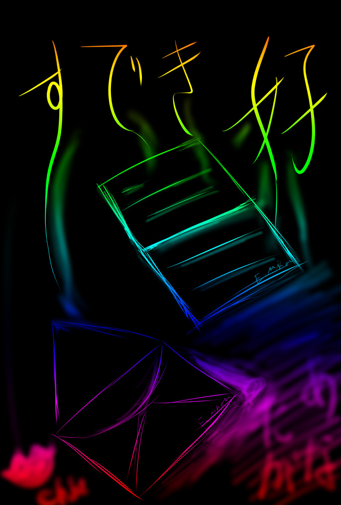 今日は音声入りアニメーションを作ろうとして撃沈しました。 とりあえずGIFアニメーションだけは作ったのでわたしのがんばりをみてください。 まばたきしてしゃべるだけのアニメーションです。 何でまたそんな急に萌えキャラアニメみたいなの作ろうとしたんすか? と様々な方がお思いのことと推測しますが、理由があるのですよ。 今日は「人からの影響を素直に受けると作品はどんどん幅を広げていく」という話です。