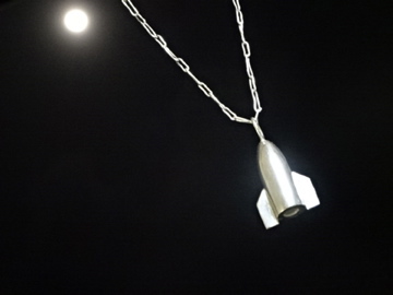 JUGEMテーマ:創作活動 ロケットの形に魅力を感じる。 このロケットは、銀の板を曲げたり叩いたりして形を作っている。 ヤットコと矢坊主で膨らませた。図面は引いていない。 最初に作ったのは、もう12年程前。 確か、三ヶ月くらいかかった。泣きそうだった。 時間とはもの凄い物で、 先日作ったこのロケット第二弾は3日で出来た。 やや、ありがたみが薄れる気もするのだが事実だ。 第二弾のロケットは、第一弾よりも小振りに作った。 このペースで出来上がるのなら、第...