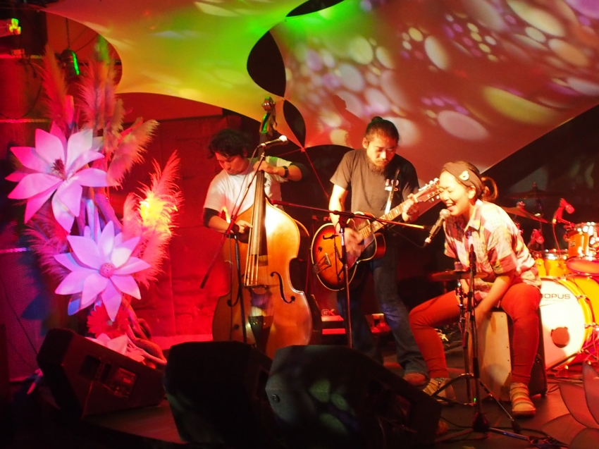 JUGEMテーマ:創作活動 『PARADE for the FUTURE』二週目はLIVEの回。 人数が多い出演者のため、 前面よりも横側重視の装飾になりました。 OHPが2台入るということで、 それを意識した白い花を5日間かけて製作してきて、 流木と合わせ立ち上げました。 テーマはそのまま「天国畑」 サイドだけで天国畑の広がりを表現したいと思い製作。 現場製作6時間。 2015.12.11 FRI. 新月 ~天国畑にイケルの変~ 真田イケル THE天国畑JAPON チャン・オータ テサキ エリーダスマン P.A: GoodSun Live Painting:...