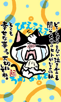 どうしようもない泣き言を 聞いてくれるヒトがいるのは とても幸せな事よ。 大切にしてね。 * * * * * (上の画像はクリックで480×854が出てきます。 スマートフォンの待受などにどうぞ。)