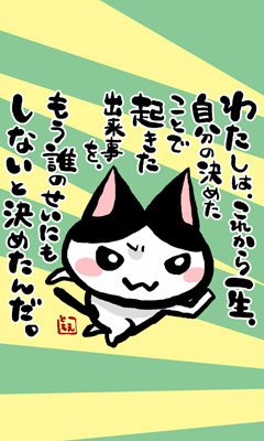 わたしは、これから一生、 自分の決めたことで 起きた出来事を、 もう誰のせいにも しないと決めたんだ。 * * * * * (上の画像はクリックで480×854が出てきます。 スマートフォンの待受などにどうぞ。)