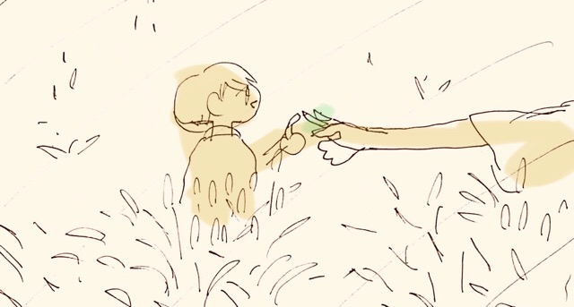 JUGEMテーマ:イラスト こんな感じで ものすごくグッとくる 懐かしく美しい小さい頃の思い出が 停止したりスローだったりで蘇って たまらなくなることがある いい気分の日に限る ネタ帳にあったこのシーンは それではない 笑