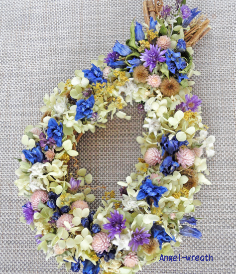 JUGEMテーマ:*リース*本日新作5点HPにアップしました今回までにブログ「リースの輪」にて、ご紹介したリース3点&アレンジ2点の合計5点です。写真のリースは、ブルーが鮮やかなしずく型のリース☆リースの王道のかたちは二重の円ですが、年にいくつかはこういったしずく型とかオーバル型とかのリースを作りたくなります秋から冬に向かうこの季節には、ドライフラワーの色が鮮やかですし、はかなげな雰囲気が良く似合います。ぜひ一度HPをチェックしてみてください〔 新作リース&アレンジ はこちら 〕 『リ...