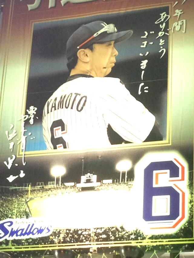 JUGEMテーマ:東京ヤクルトスワローズ JUGEMテーマ:プロ野球全般先週の金曜日19年間かっこいいプレイを見せ続けてくれた ヤクルトスワローズの宮本慎也選手が引退してしまいましたぁ〜 短い間ではありましたが、宮本選手のファンでありましたのでこの引退試合だけはどうしても見たい! どうにかチケットを手に入れて 神宮球場 行ってきました球場外にはこんな垂れ幕があ〜さびしい球場内は 小雨が降る中 外野席後ろ側にはずら〜っと立ち見のファンの方々がそして私のチケットはバックネット裏上段の狭い席ちょうど中継席が...