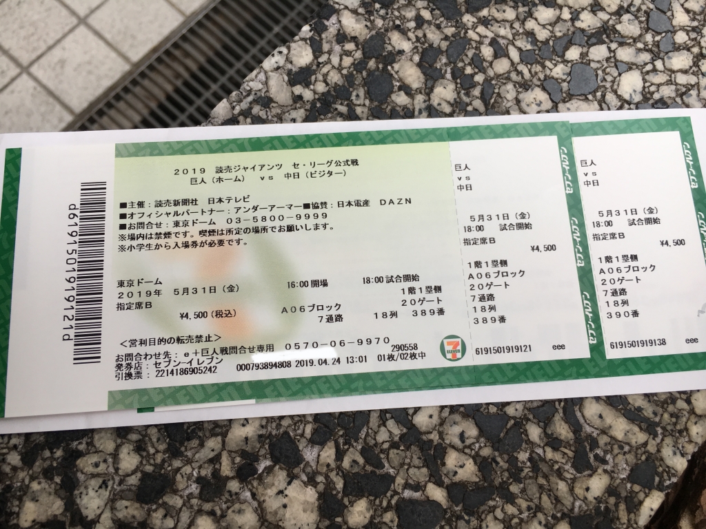 2018年5月31日(金)。 今日は東京ドームで、巨人対中日戦を観戦。 この日を選んでチケットをとった理由がありまして、 それは、「レプリカユニフォーム」がもらえるから! しかも、「闘魂シリーズ」ということなので、オレンジ色の「レプリカユニフォーム」が入場者全員に配られます! 昨年もやはり「レプリカユニフォーム」がもらえる日に観戦し、ジャイアンツの「ビジター用レプリカユニフォーム」をもらいました。 でも、かみさ...