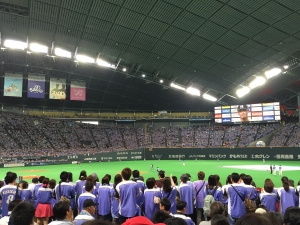 JUGEMテーマ:今日の日記 JUGEMテーマ:写真日記 JUGEMテーマ:北海道日本ハムファイターズ 今年も行ってきました 今日は、来場者全員にエゾリューションラベンダーカラー ユニフォームの プレゼント日。 満員の札幌ドームがラベンダーカラーに染まって、キレイでした 試合も勝ったし、いっぱい応援したし、楽しかった〜