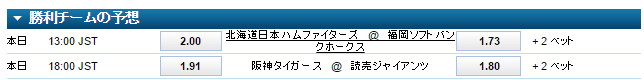 JUGEMテーマ:プロ野球予想 日本シリーズは、阪神の先勝で始まりました。 阪神の勢いが止まりませんね! クライマックスシリーズから負けなしの 7連勝です。 このまま一気に頂点へ・・・ という勢いです! 昨日は、阪神の勢いに乗らせて頂いたので ゲームを安心して見ることができました。 今日も早々に 勝利を確信できるようなベットをしたいものです。 それでは、いってみましょう! <a href="http://baseball.yahoo.co.jp/npb/game/2014102601/top" target="_blank"&g...