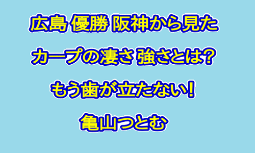 JUGEMテーマ:広島東洋カープ 今回は、YouTubeにあった 『広島 優勝 阪神から見た カープの凄さ 強さとは? もう歯が立たない!亀山つとむ』 を アップしました。 思わず、( ̄ー ̄)ニヤリ♪ いや〜阪神だって、監督が、 金本になって、強くなってるよ〜・・・続く