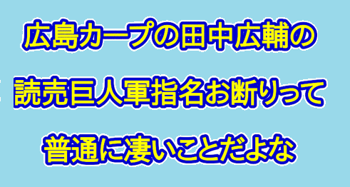 JUGEMテーマ:広島東洋カープ 今回は、YouTubeにあった 『広島カープの田中広輔の 読売巨人軍指名お断りって 普通に凄いことだよな』 を アップしました。 へ〜そうだったんだ〜♪ やはり、高校生だと、プロは、 憧れだが、社会人ともなると 職業として 捉えてたんだね〜 広輔は〜♪・・・続く