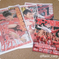 カープがリーグ優勝を決めたのが、先週の土曜日 歓喜の瞬間から、およそ1週間が経ちました。 新聞やら本など、続々と優勝関連のものが出て…読みながら、まだまだ余韻にひたっています 写真は優勝が決まり、数日後にコンビニでゲットしたタブロイド版の優勝特集号 取り寄せしないと手に入らないかな〜と思っていたら、職場近くのコンビニに普通に置いてありました。 一緒に置いてあった本も合わせて購入