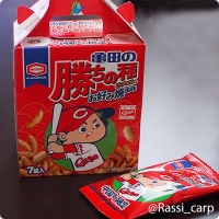 勝ちの種〜 5月の上旬にマツダスタジアムへ行った際に買ってきたカープなお菓子を、少しずつ食べています(すっかり自分用のお土産と化しています) 中国地方限定 普通の柿の種かと思いきや、お好み焼き味でした う〜ん、美味しいのは美味しいのですけれど… 普通の柿の種の味の方が、私は好みでした さて、お菓子はこのくらいにして― 火曜日からセ・パ交流戦がスタート 初日&2日目を振り返り