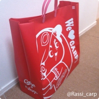 昨日は2015年の初出勤でした。 休み中はずっと家でごろごろしていたもので、しんどい〜 なんとか仕事を終えて帰宅すると…大きな箱が届いていました。 開けると坊やがプリントされた赤い大きな袋 だいぶ前に注文していた福屋の福袋でした 2015 カープ&福屋 コラボDE応援福袋2015 届くのは1/5以降となっていたので、まだだろうと思っていたら、届きました (→注文した際の記事はこちら「カープ女子福袋♪」)