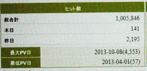 JUGEMテーマ:このブログについて 昨晩アクセス解析をチェックしてみて気付いたのだが当バカブログの累計ヒット数(PV)が100万を突破!アクセス解析ツールを設置したのが昨年の3月26日つまり累計100万に達するまでに470日掛かったことになるこれが遅いのか速いのかは不明だが、最も苦手とする地道な作業が470日も続いた事に私自身が驚いた!(笑)とは言え、更新が4〜5日空く事もしばしばだが・・(汗) バカボンが驚愕したガイドブック! 失敗しないマカオサウナの遊び方 安く楽しく遊べれば一回で元が...